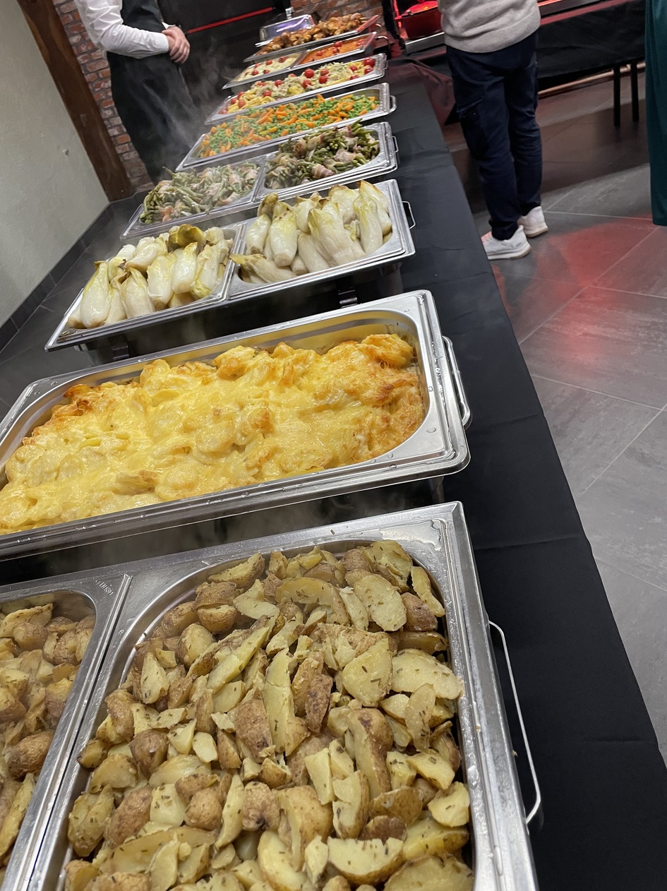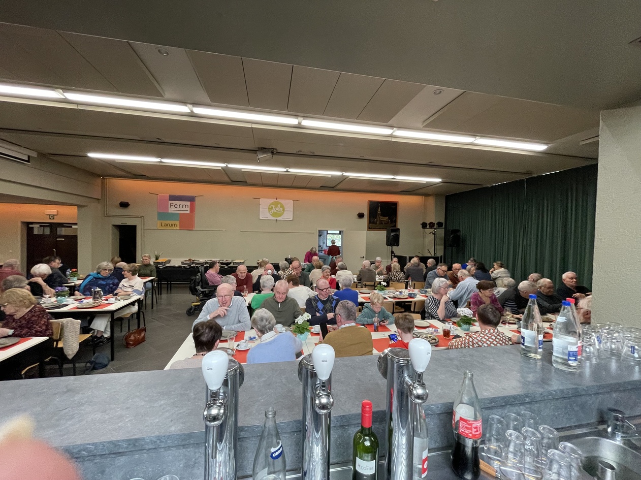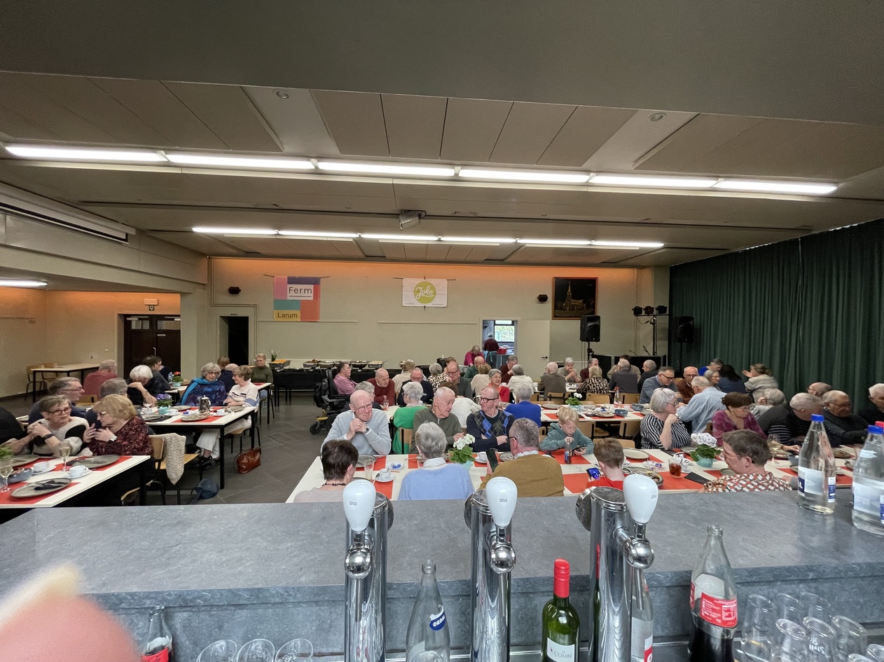 Een dag om van te genieten Om 12.00 uur ging het feest van start met een gezellig middagmaal. Aan de rijkgevulde Breugeltafel konden 80 aanwezigen proeven van onder andere soep, frikadellen met krieken, pensen, spek, ribbekes, vidé en heerlijke vlaai. Een echte klassieker waar iedereen van smulde. In de namiddag, om 13.30 uur, werd het extra gezellig tijdens de bingonamiddag in de parochiezaal. 50 deelnemers genoten van spanning, plezier en fijne momenten samen. ’s Avonds volgde het hoogtepunt van de dag: Dinner & Dance om 19.30 uur. 145 feestvierders werden verwend met een aperitief, een uitgebreid wandelbuffet met warme en koude gerechten, een dessertenbuffet en aangepaste wijnen. Daarna barstte het feest helemaal los op de dansvloer met een spetterend dansfeest, verzorgd door DJ Boer Jan. Dranken waren inbegrepen voor de hele avond — sfeer en gezelligheid gegarandeerd!